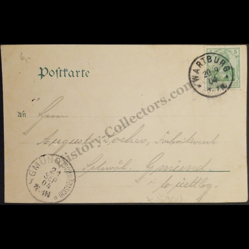 This German Postcard Depicts The Lutherhaus In Eisenach During The German Empire Period. The Image Shows The Historic Building Known As The Former Residence Of Martin Luther During His School Years From 1498 To 1501. By The Early Twentieth Century The Site Had Become A Recognized Landmark And Tourist Destination. The Postcard Was Published By Verlaganstalt C. Jagemann Of Eisenach And Features A Hand Colored View Typical Of Pre Photographic Color Printing. The Card Was Mailed On 26 September 1904 And Bears A 5 Pfennig Deutsches Reich Stamp With A Wartburg Postmark. The Divided Back Format And Handwritten Message Reflect Postal Practices Of The Era And Document The Popular Use Of Postcards To Share Historic German Sites.