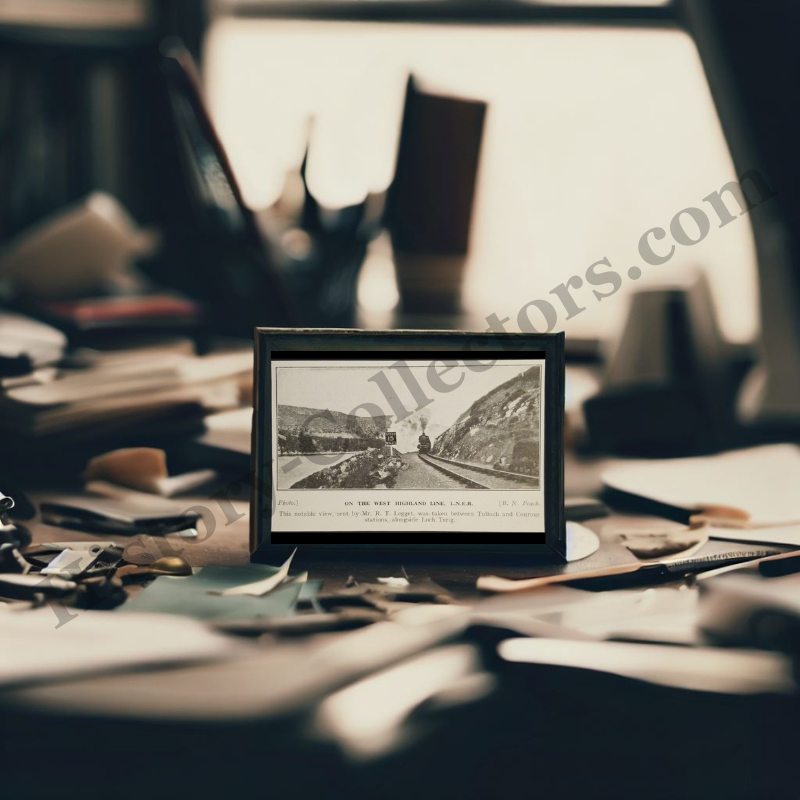 This 1929 Print Clipping Features A Photograph Taken Along The West Highland Line Of The London And North Eastern Railway, Between Tulloch And Corrour Stations Beside Loch Treig In Scotland. The Image, Summitted By Mr. R. T. Legget And Credited To B. N. Peach, Shows A Steam Locomotive Traversing A Curved Section Of Track With A Visible Speed Limit Sign Of 15 Miles Per Hour. The West Highland Line Was Known For Its Remote Terrain And Scenic Views, Serving As A Vital Link Through The Scottish Highlands. This Clipping Reflects Early 20th Century Railway Documentation And Visual Reporting In The Context Of British Rail Transport History.