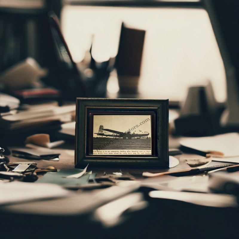 This 1945 Photograph Print Clipping Shows A B-29 Making An Emergency Landing On Iwo Jima After A Bombing Raid. The Capture Of Iwo Jima Provided A Strategic Airfield Between The Mariana Islands And Japan, Allowing Damaged Bombers To Land Safely. Between March And August 1945, Thousands Of B-29s Used The Airstrips On Iwo Jima, Saving Tens Of Thousands Of Airmen’s Lives. The Image Highlights The Direct Connection Between The Battle Of Iwo Jima And The Survival Of Bomber Crews, Emphasizing The Military Importance Of Securing The Island Despite The Heavy Casualties Suffered In Its Capture.