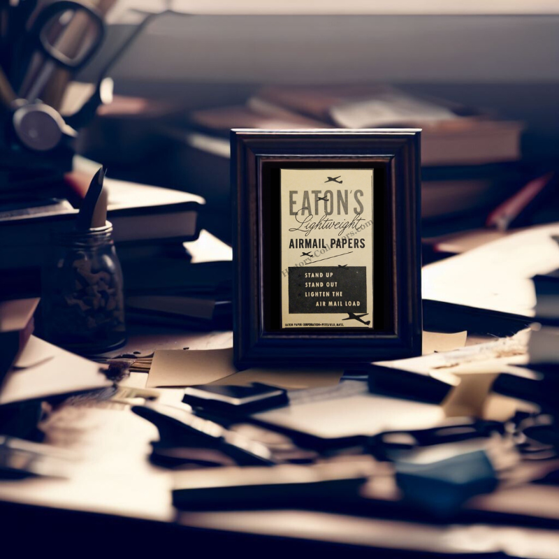 Eaton’s Lightweight Airmail Papers Were Produced By The Eaton Paper Corporation In Pittsfield, Massachusetts, And Advertised In 1945. These Papers Were Designed For International Airmail Correspondence At A Time When Weight Directly Affected Postage Costs. The Product Allowed Writers To Save On Postage While Maintaining A Clean And Professional Appearance. The 1945 Advertisement Reflects The Final Year Of World War II, When Airmail Was Widely Used By Civilians, Soldiers, And Businesses For Overseas Communication. The Use Of Airplane Imagery In The Design Reinforced Its Direct Connection To Airmail Services And Global Letter Writing.