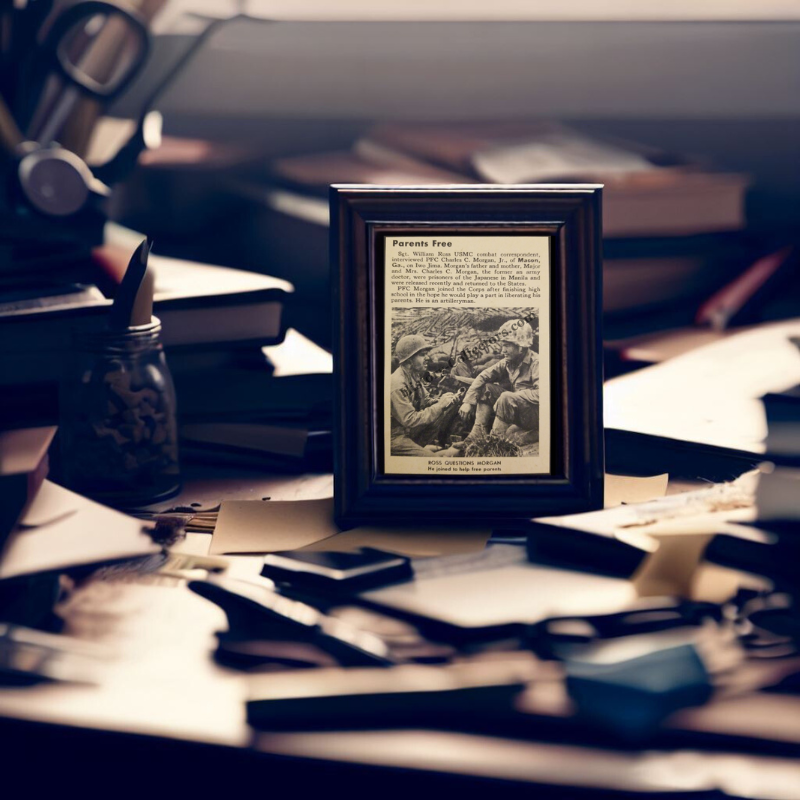 1945 Morgan Joined USMC To Free Parents From Japanese Interment Camp Photograph Print Clipping - PFC Charles C. Morgan Jr. Of Macon Georgia - United States Marine Corps - Iwo Jima - Pacific Theater - WWII Era - Ready For Framing