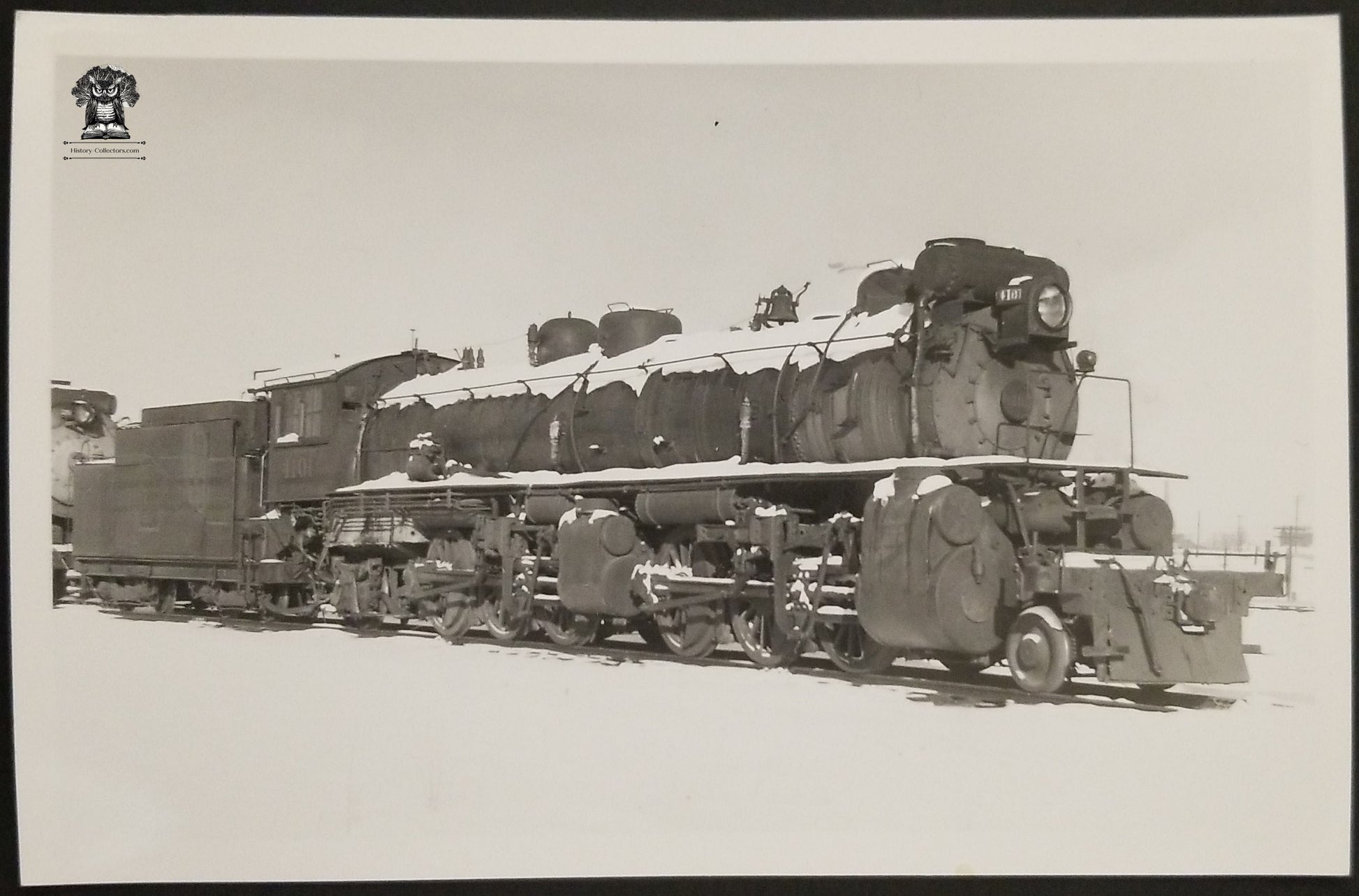 Vintage Original 1948 Real Picture Postcard of CB&Q Locomotive Coal Steam Engine Number 4101 - Snow Covered