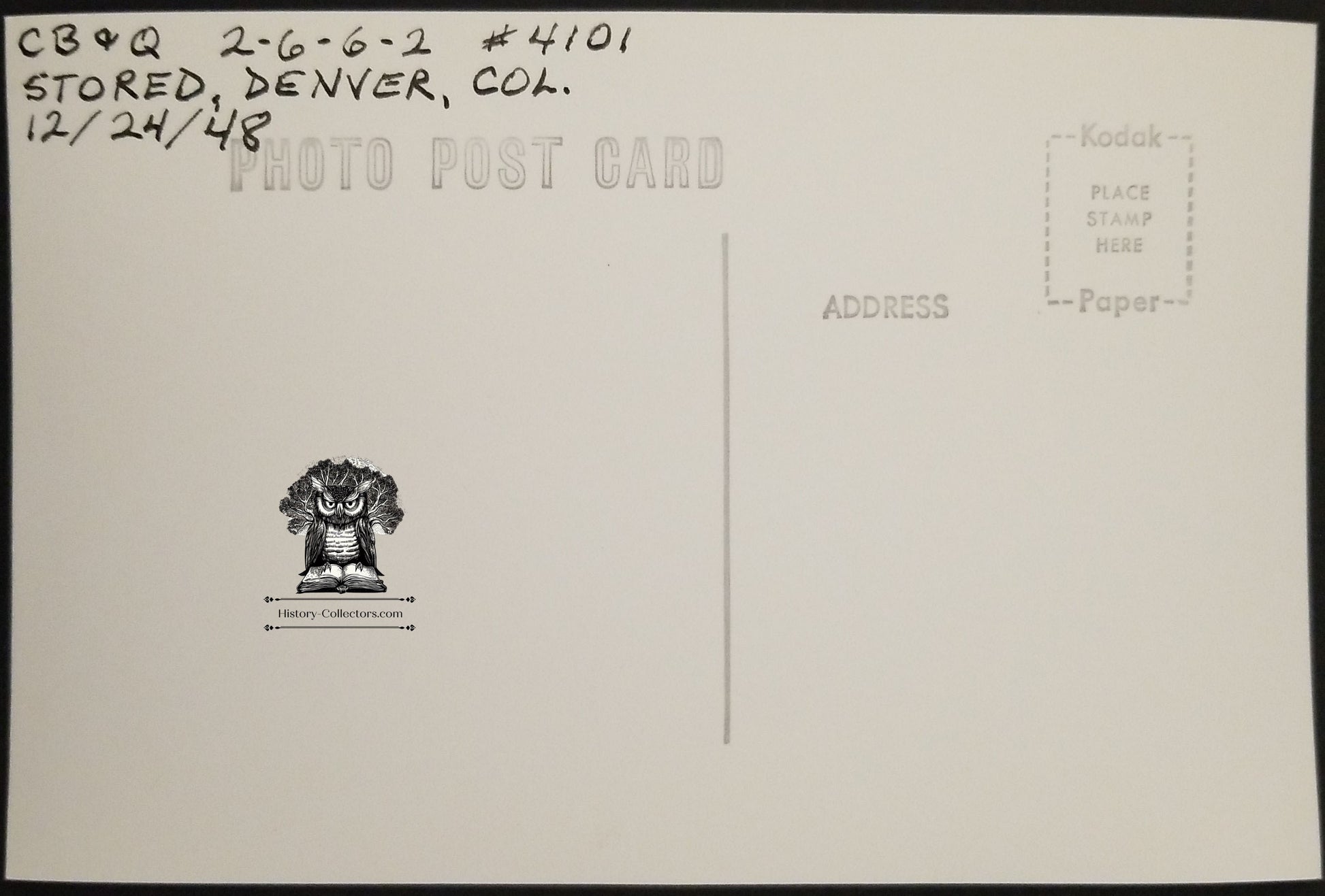 1948 RPPC Picture Postcard - CB&Q Railroad Steam Engine Train 4101 - Denver Colorado - Photographer Kindig - Christmas Eve