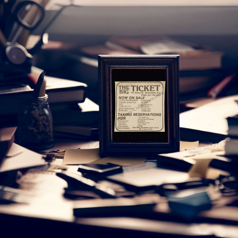 This 1980 Print Advertisement Documents The Big Ticket, A Regional Ticket Brokerage Located At 157 Grove Street In Bloomfield, New Jersey. The Ad Promoted Advance Sales And Reservations For Concert, Sports, And Theater Events During A Period When Tickets Were Purchased In Person Or By Telephone. It Lists Prominent Touring Acts Active At The Time, Including Frank Sinatra, David Bowie, Tom Petty, Genesis, Blondie, And Bruce Springsteen. The Advertisement Reflects The Role Of Independent Ticket Outlets Before Centralized National Ticketing Systems Became Standard. It Also Illustrates How Local Businesses Served As Primary Access Points For Major Live Events In The New York And Northern New Jersey Entertainment Market.